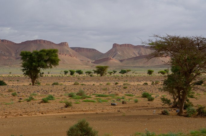 rapproche de la chaîne de montagnes de l’Anti-Atlas, le soleil pointe timidement le bout de son nez.