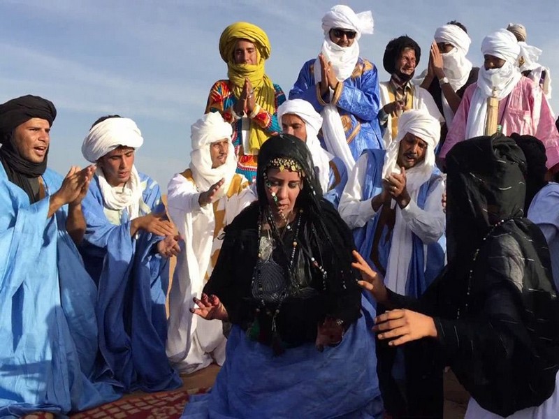 Guedra (Géoparc Jbel Bani) Considérée comme l’une des danses les plus populaires de l’extrême sud marocain, la Guedra est une danse pratiquée par une femme au milieu d’un groupe de chanteurs, tous dirigés par le ry