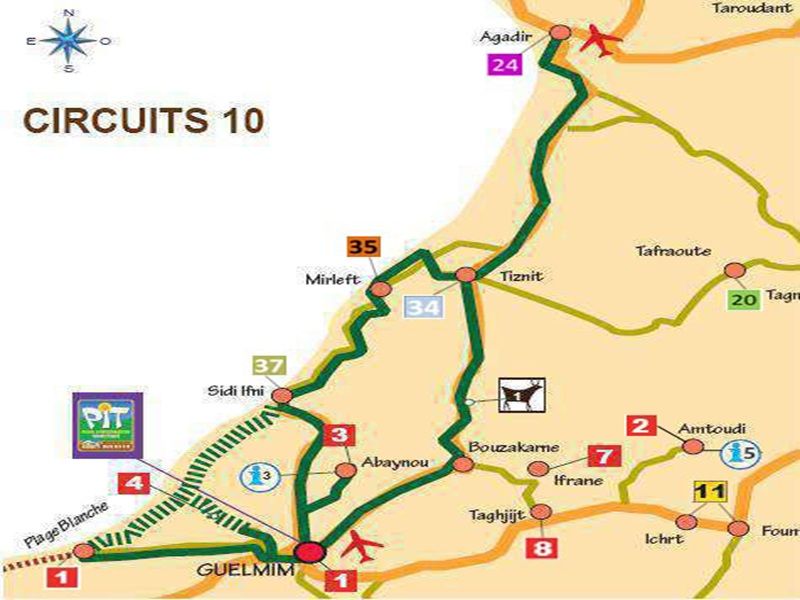 Circuit 5 jours de Guelmim vers Agadir-géoparc jbel bani Çircuit de 5 jours : Circuito en 5 dias - Circuit in 5 days Jour 1 - Guelmim - Amtoudi - Akka - Tata Jour 2 - Tissint - Akka Naït Sidi Jour