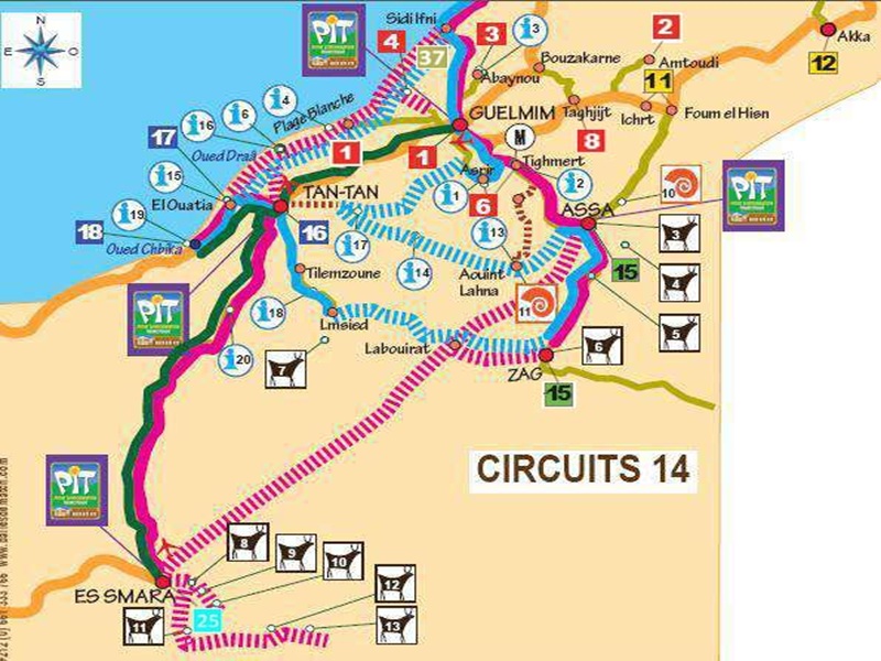 Circuits pistes du Sud Maroc-géoparc jbel bani Avec 4x4 : Sidi Ifni - Foum Assakak - Plage Blanche - Oued Draa - Tan Tan - (*) El Ouatia - Es Smara - Labouriat - Assa - Tan Tan - Asrir OU (*) El Ouatia - Lmsied - Zag - Assa